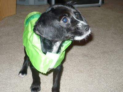 We had this puppy raincoat laying around so I had to make Stewie try it on!